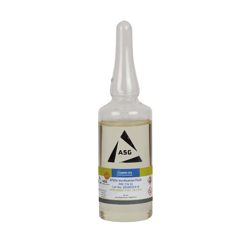 Genel olarak ISO 17034 ve ISO Guide 35 ilkelerine uygun olarak üretilen AFIDA Doğrulama Sıvısı, sertifikalı bir değere sahip n-hekzadekan ve 1-metilnaftalinin hacimsel bir karışımıdır. Denetlenen laboratuvarlar ve ISO 17025 ile uyumlu olanlar için doğrulama gereksinimlerini karşılamaya yardımcı olmak için kullanılır.