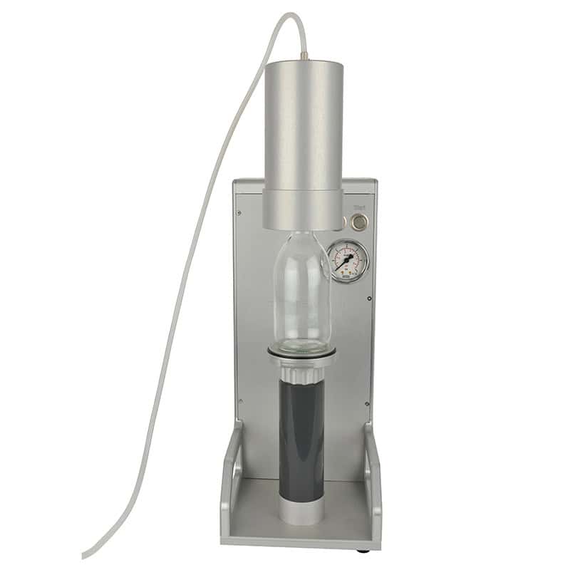 Bir kompresör ve bir numune basınçlandırma odasından oluşur. Numune platformuna bir numune şişesi yerleştirilir ve platform, entegre bir kompresör tarafından 3 bar’a kadar basınçlandırıldığı basınçlandırma odasına yükseltilir. Numune, numune iletim tüpü aracılığıyla basınç altında partikül sayacına geçer. İletim tüpü, numune iletim sistemi partikül sayacından ayrıldığında numune sızıntısını önlemek için bir geri dönüşsüz valf içerir.
