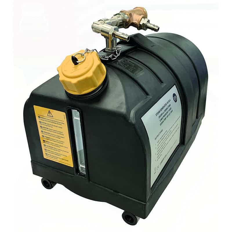 7,5 litre (5,25 litre kullanılabilir) kapasiteli, maksimum 28,4 kPa (4 psi) çıkış ayarlı, elektrikle ısıtılan taşınabilir bir buhar jeneratörü.