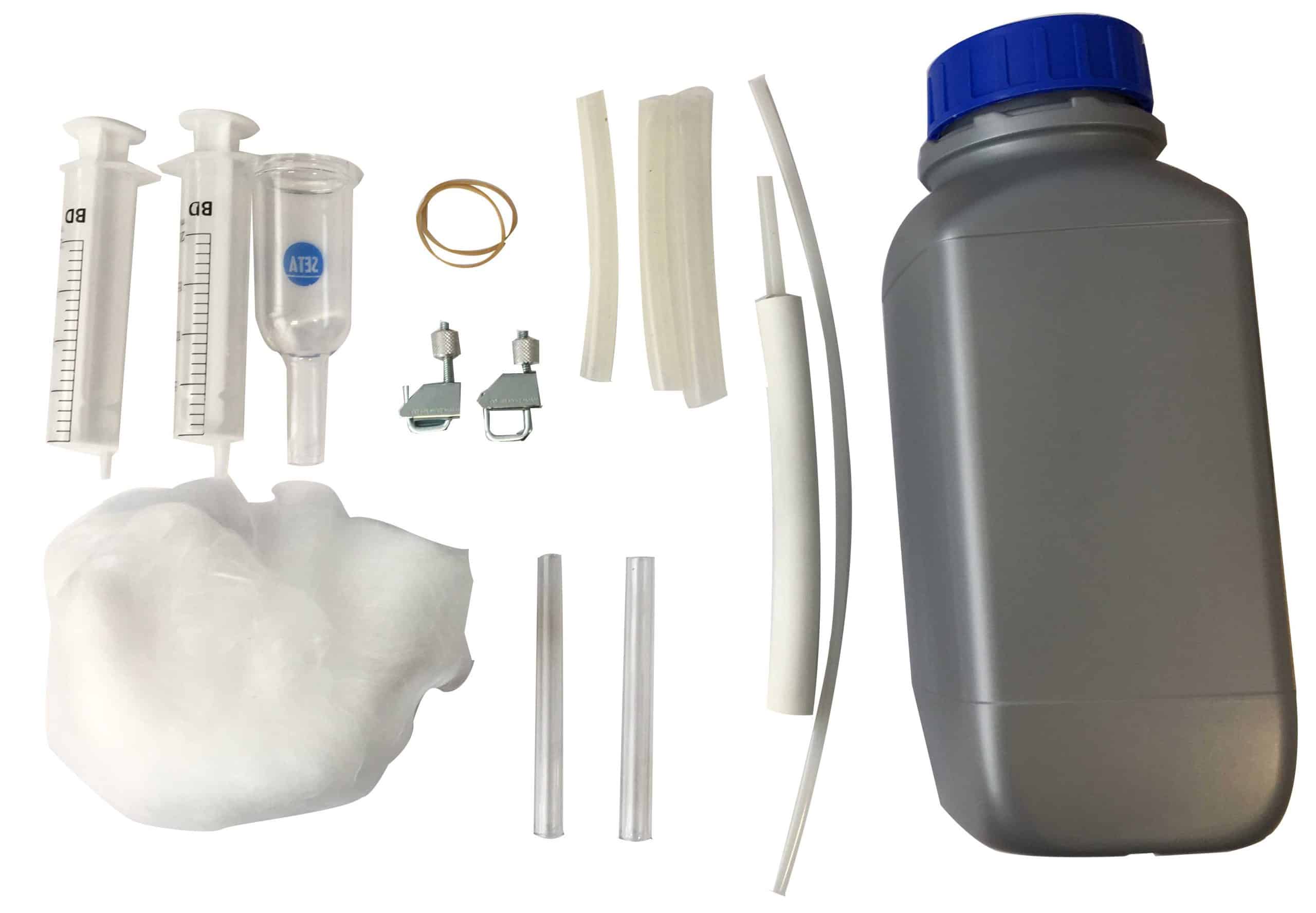 Birlikte verilir; 2 x 20 ml şırınga 1 x cam huni 2 x cam tüp 2 x tüp kelepçesi 250 mm naylon boru 6 mm OD x 4 mm ID 2 x 90 mm silikon tüp 9,5 mm OD x 6,5 mm ID 1 x 90 mm silikon tüp 13 mm OD x 9 mm ID 1 x şırınga adaptörü Cam yünü Silika jel (kap gösterilenden farklı olabilir) Lastik bantlar