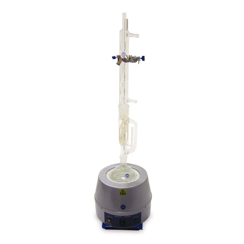ASTM D1322 ve IP 57 test prosedürlerine uygun olarak kullanıma uygundur. 60 ml Soxhlet ekstraktör, kondansatör, 500 ml cam şişe, şişe ısıtıcı, stand ve kelepçeden oluşur.