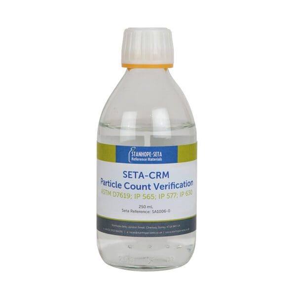 SETA-CRM AvCount Doğrulama Malzemesi, NIST SRM 2806a ve 2806d’ye göre izlenebilir bir partikül dağılımına sahip bir İkincil Çalışma Standardı (SWS) olarak hizmet eder. Laboratuvarlar bunu IP 565, IP 630 ve/veya ASTM D7619 kullanarak ISO 11171’e göre kalibre edilmiş Otomatik Partikül Sayaçları (APC’ler) ile kullanır.