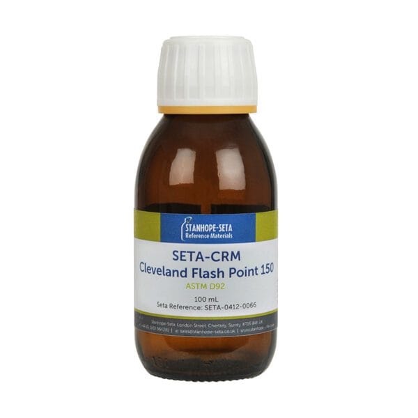 Cleveland Parlama Noktası Sertifikalı Referans Malzemesi, ISO 17034 UKAS akreditasyonumuz ve ISO 33405 kapsamında üretilir ve ISO 33401‘e uygun belgelerle birlikte sağlanır.