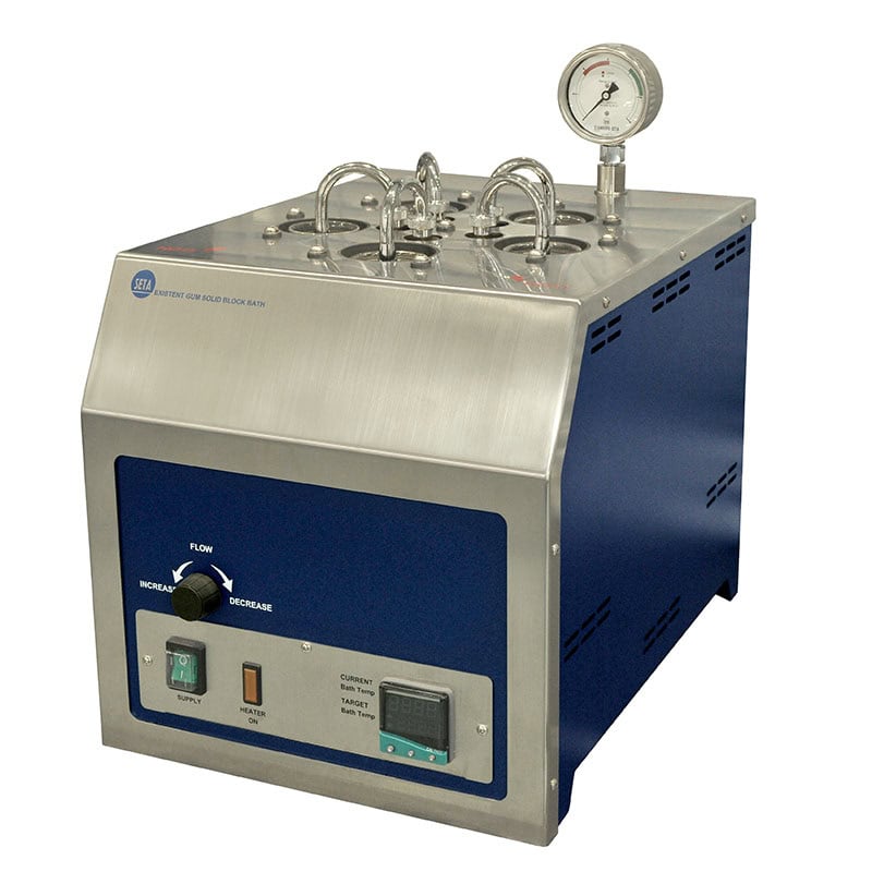 Jet Buharlaştırma yöntemiyle yakıtlardaki mevcut sakız içeriğini belirlemek için beş adede kadar eşzamanlı test gerçekleştirmek üzere tasarlanmış bir Katı Blok Banyosu