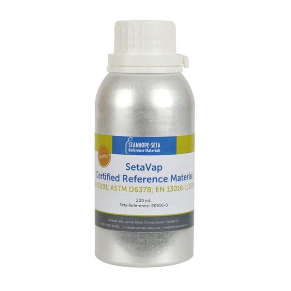 Genel olarak ISO 17034 ve ISO 33405 ilkelerine uygun olarak üretilen SetaVap Sertifikalı Referans Malzemesi (CRM) Pentan, birden fazla test yöntemi için sertifikalı değerler sağlar ve uluslararası izlenebilirlik sağlamak için yetkin laboratuvarlardan oluşan bir ağ kullanılarak karakterize edilmiştir. Denetlenen ve ISO 17025 ile uyumlu olan laboratuvarlar için doğrulama gereksinimlerini karşılamaya yardımcı olan oldukça uygun maliyetli bir çözümdür.