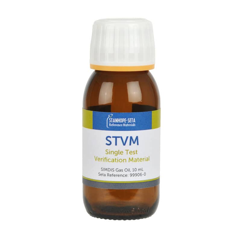 Genel olarak ISO 17034 ve ISO 33405 ilkelerine uygun olarak üretilen SIMDIS Tek Test Doğrulama Malzemesi (STVM) Gaz Yağı, tek bir test yöntemi için sertifikalı bir değer sağlar ve uluslararası izlenebilirlik sağlamak için yetkili laboratuvarlar ağı kullanılarak karakterize edilmiştir. Denetlenen laboratuvarlar ve ISO 17025 ile uyumlu olanlar için doğrulama gereksinimlerini karşılamaya yardımcı olan oldukça uygun maliyetli bir çözümdür.