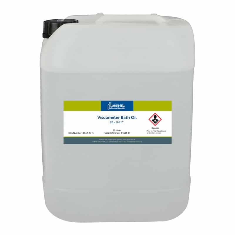 20 Litre banyo yağı, 80 ila 120 °C sıcaklık aralığındaki viskozimetre banyolarını doldurmak içindir. Seta banyo sıvıları, Seta banyolarının ısı stabilitesini ve verimliliğini en üst düzeye çıkarmak için formüle edilmiştir. Düşük viskozite, kabarcık oluşumunu azaltır ve kabarcıkların dağılmasına yardımcı olur.