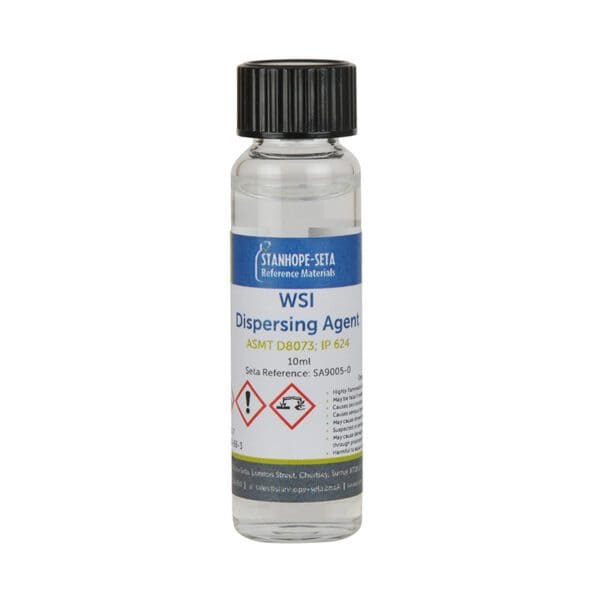 WSI Dispersiyon Maddesi, 1 mg/mL katı (%100 kuru) bis-2-etilheksil sodyum sülfosüksinat içeren bir Toluen çözeltisidir ve ISO 17025 onaylı bir laboratuvar tarafından onaylanmış bir terazi kullanılarak bileşenlerin kütlesinin doğru bir şekilde belirlenmesiyle üretilir. Güvenlik Bilgi Formu (SDS) dahil olmak üzere tam dokümantasyonla birlikte, kurcalanmaya karşı korumalı güvenlik ambalajında tedarik edilen bu ürün, üretim tarihinden itibaren 2 yıl raf ömrüne sahiptir. Paket boyutu: 10 mL.